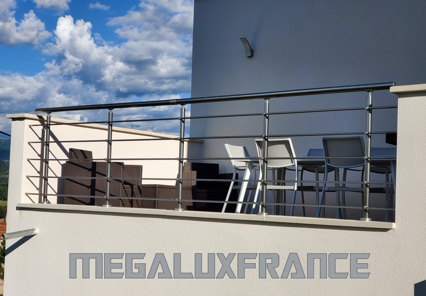 MEGALUX FRANCE conçoit des garde-corps aluminium sur mesure, stables et soignés, pensés pour balcons, terrasses, escaliers et accès, avec une finition qui reste nette dans le temps.